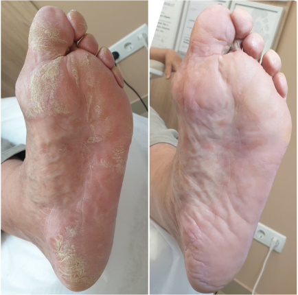 En el futuro, el hongo puede extenderse a la piel sana, a los pliegues interdigitales, donde puede aparecer enrojecimiento, picazón e incluso erosión. Sucede que la infección se extiende incluso a los dedos del otro pie.